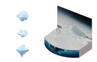 The icebergs in the background screen are continued with some physical icebergs’ model placed on the stage, and the naked-eye 3D screen below is matching the underwater part with the icebergs above the water surface.